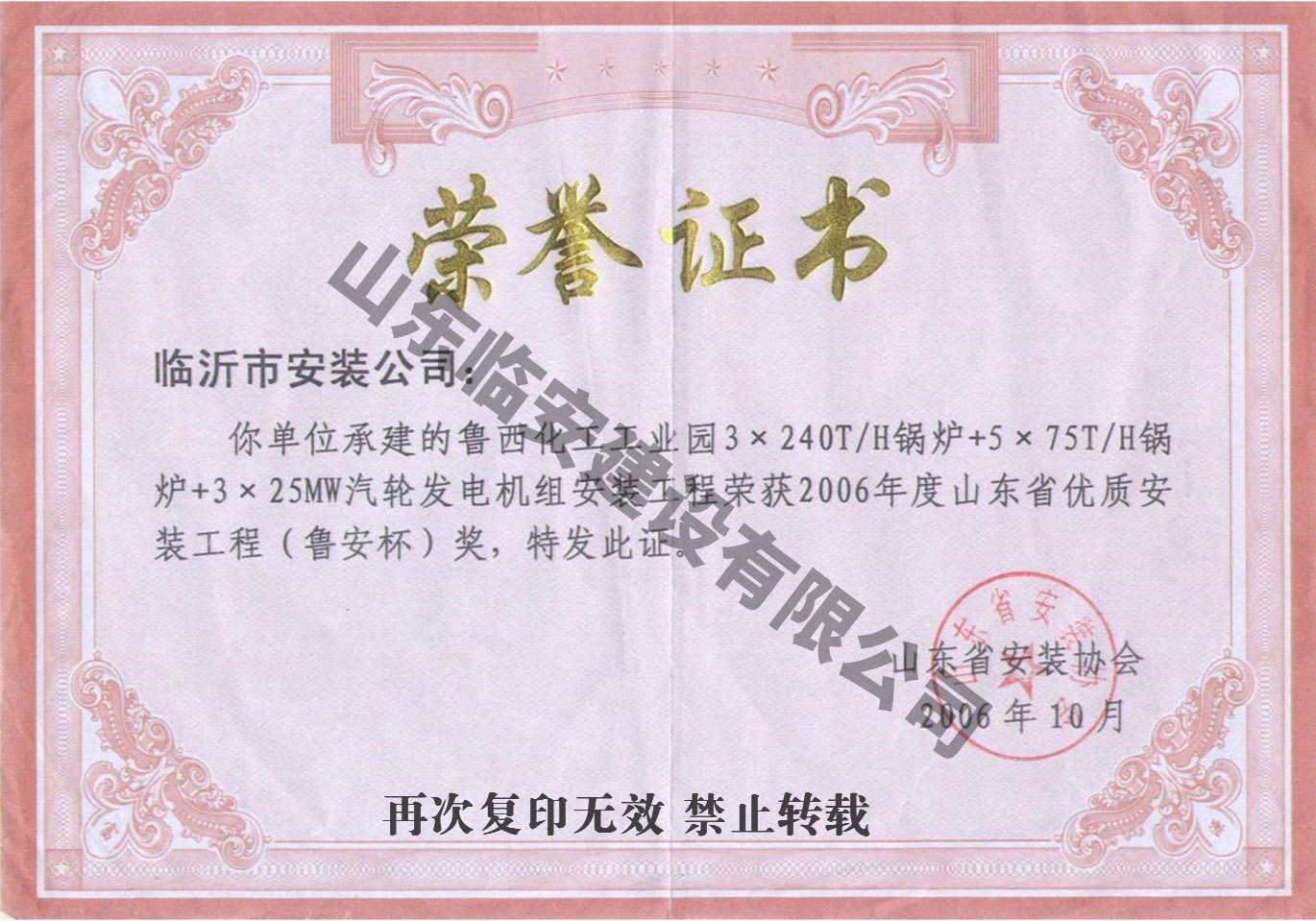 山東臨安建設(shè)有限公司(原名臨沂市安裝公司)始建于一九六六年,是由老國(guó)企改制的股份制企業(yè),公司總部位于羅莊區(qū)通達(dá)路211號(hào),現(xiàn)有職工1000余名,各類(lèi)工程經(jīng)濟(jì)技術(shù)人員816名,其中高中級(jí)職稱64名,初級(jí)職稱204人。主要從事機(jī)電工程施工總承包,電力施工總承包,石油化工施工總承包,建筑裝飾裝修施工總承包,鍋爐安裝、改造I級(jí)(參數(shù)不限),GB1、GB2(2)級(jí)、GC1級(jí)、GD1級(jí)壓力管道安裝,起重機(jī)械B級(jí)安裝,電力設(shè)施承裝、承試,并取得了GB/T19001-2008質(zhì)量管理體系認(rèn)證證書(shū)、GB/T28001-2011職業(yè)健康安全管理體系認(rèn)證證書(shū)、GB/T24001-2004環(huán)境管理體系認(rèn)證證書(shū),資信等級(jí)“AAA”級(jí)。